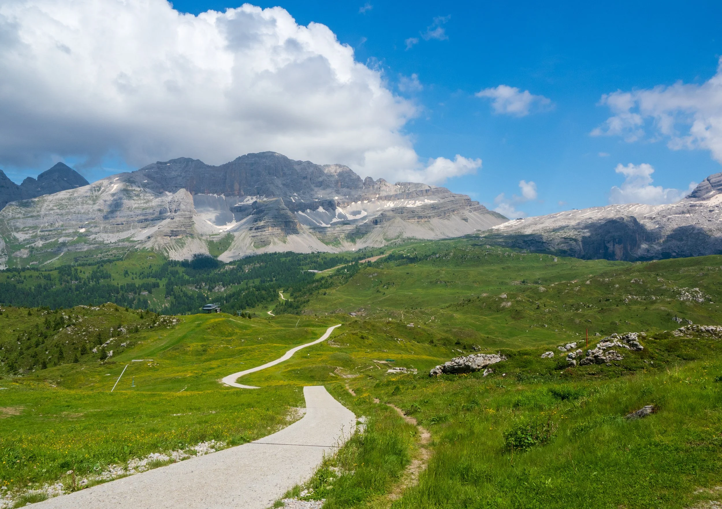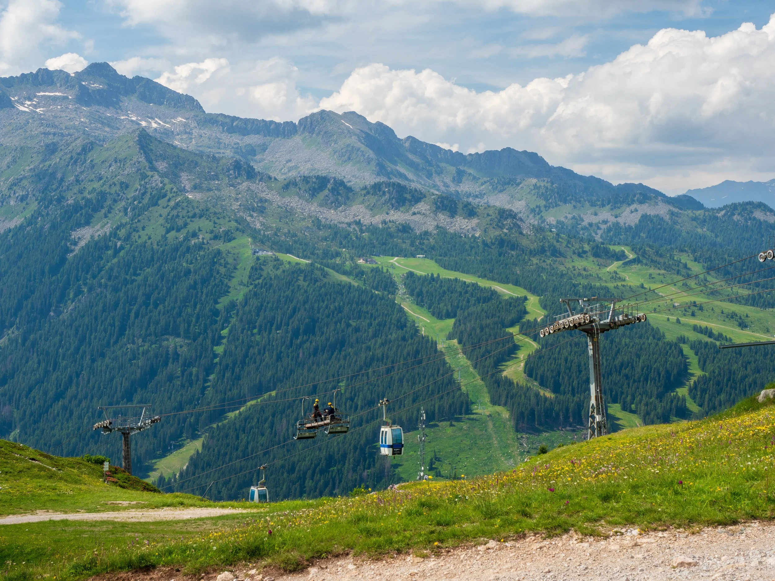 When we visited in July, long after the snow had melted, the resort revealed a softer side — a place where wildflowers carpet the meadows, the air hums with cowbells, and trails lead deep into the Brenta Dolomites, a UNESCO World Heritage treasure.