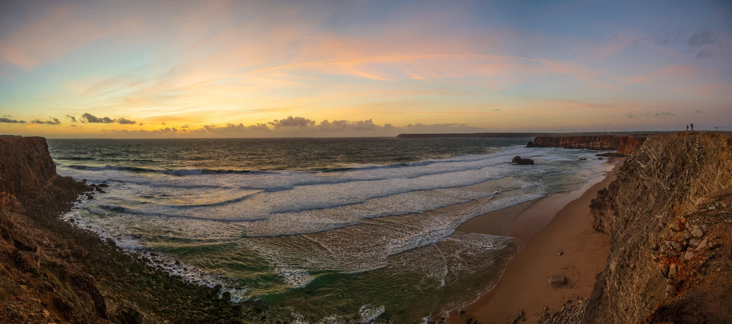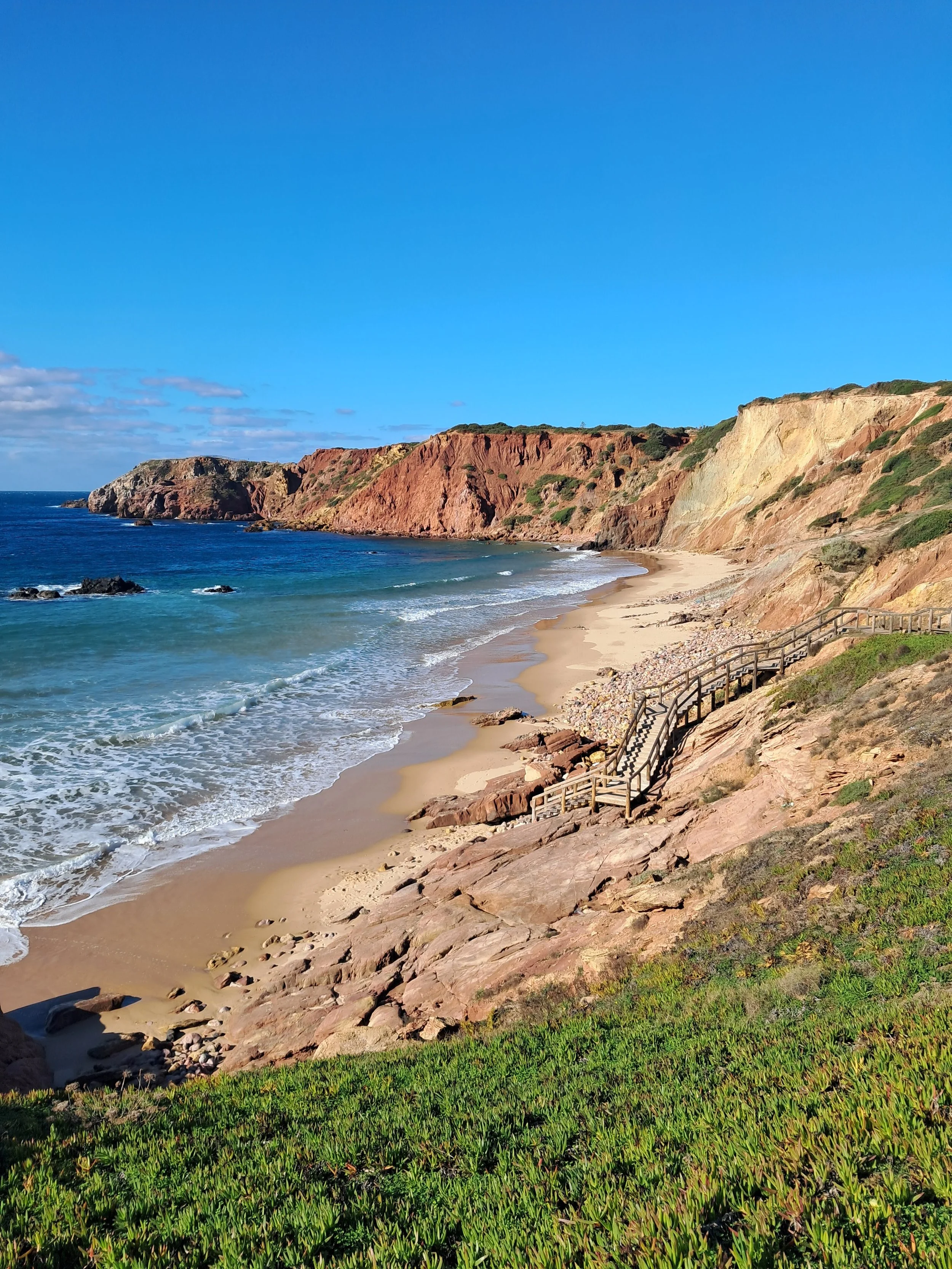 Tonel Beach is just a short walk across the headland and technically the first taste of the wild Portuguese west coast. The landscape is striking: rock stacks and imposing cliffs frame Tonel and give it a feeling of remoteness—though the reality didn’t quite match that. When I surfed there, it felt like the entire German expat community had turned up. Every wave had about six people paddling for it! Crowds aside, the beach is lovely, and the cliffs above, near Sagres Fortress, make for a perfect spot to watch dramatic sunsets.