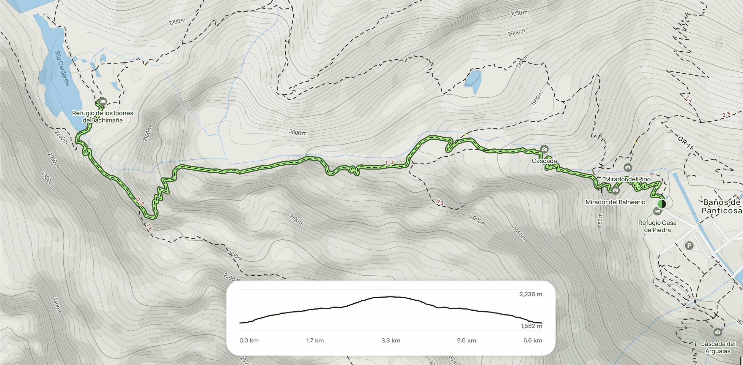 The route begins with immediate switchbacks, climbing steadily towards the Mirador del Pino, your first waterfall viewpoint. A little further along, you'll find a scenic platform offering panoramic views over the basin-like valley that houses several mountain resorts.