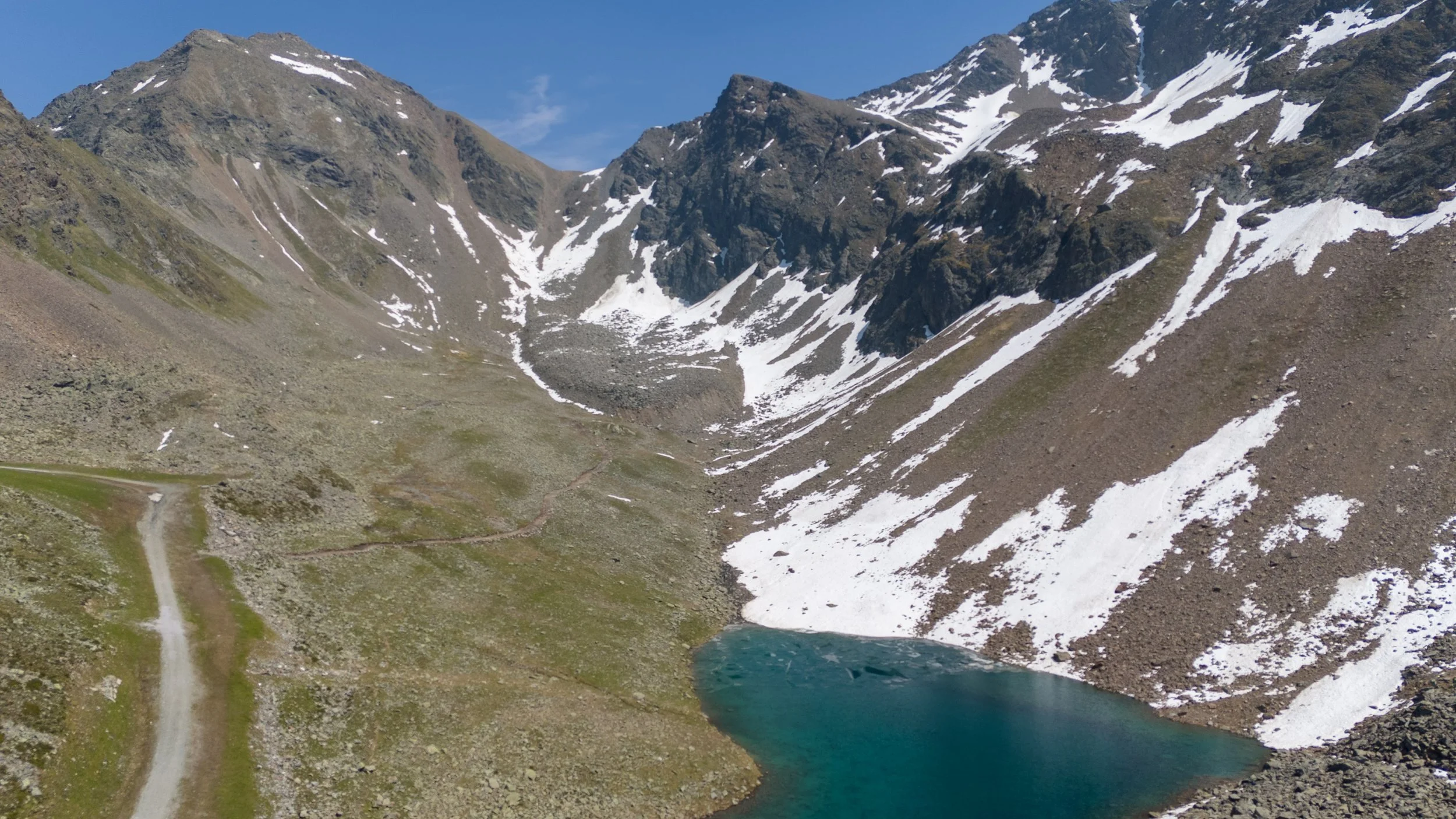 The final lake on the route is Hirschebensee, reached by a winding single-track trail that drops elevation quickly through scenic switchbacks. This is the warmest and most inviting of the lakes, with shallower edges allowing the sun to gently warm the water. It's a perfect spot for a relaxing break, with lovely views of Pirchkogel and surrounding peaks.